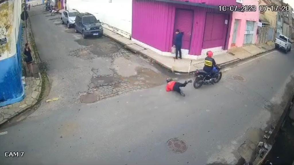Uma câmera de segurança flagrou a ação de um ladrão trapalhão na manhã desta segunda-feira (10), na cidade de Guarabira, Brejo paraibano. O assaltante caiu da moto ao se dirigir à vítima.