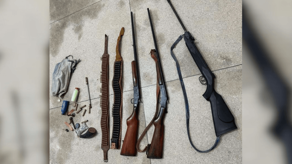 Após as ameaças contra a companheira, foram solicitadas à Justiça medidas protetivas de urgência e a ordem para apreensão de armas de fogo mantidas pelo acusado na residência. Durante as buscas na residência foram apreendidas duas espingardas de cartuchos de calibres 32 e 36, além de várias munições.
