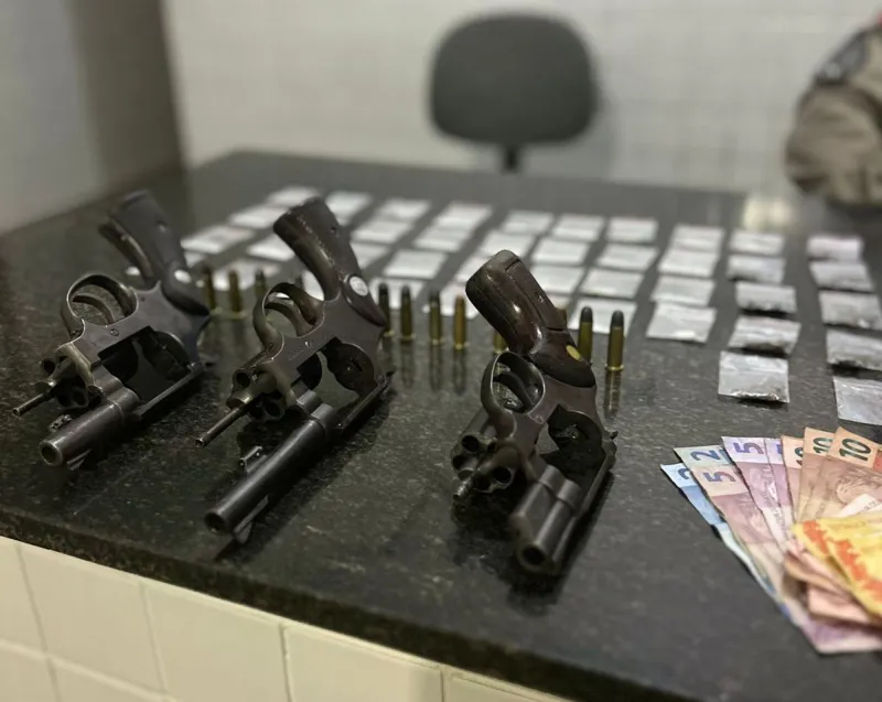 Vinte e nove munições e mais de 80 porções de drogas também foram apreendidas e encaminhadas para a delegacia, junto com os acusados e as armas. Entre os presos, pelo menos um deles já havia sido conduzido para a delegacia semana passada com drogas.