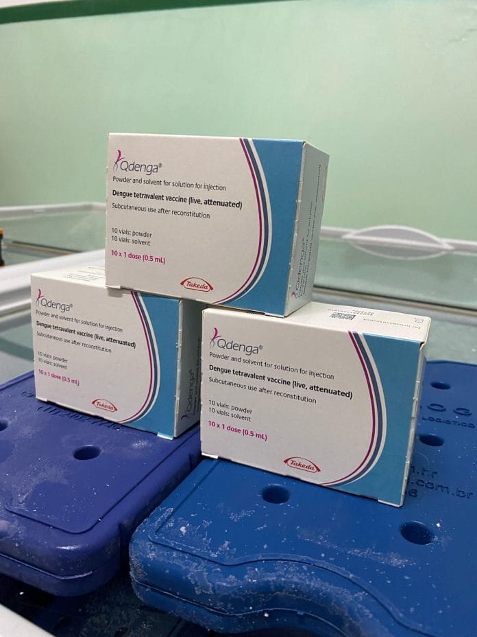 A vacina é segura e eficaz contra os quatro sorotipos do vírus da dengue, ajudando a proteger a população contra essa doença grave. São duas doses, sendo a segunda aplicada após três meses da primeira.