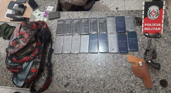 Com ele, foi apreendido uma mochila, um canivete, um revolver e 18 aparelhos celulares.