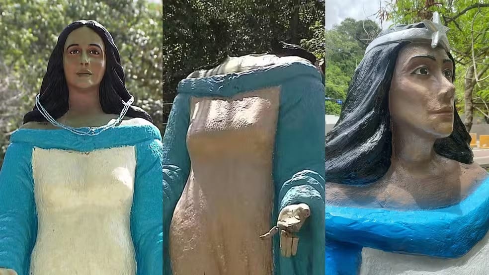 A estátua fica na orla de Cabo Branco e foi revitalizada por um devoto após ser decapitada