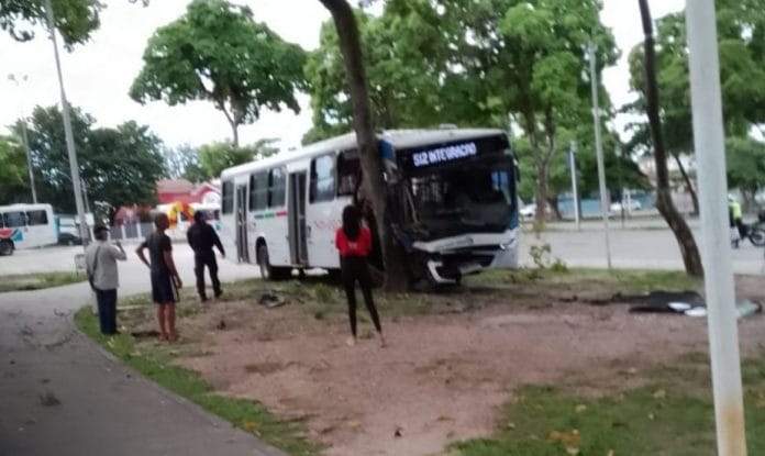 Um ônibus do consórcio Navegantes, que integra o transporte público de João Pessoa, sofreu uma falha mecânica e acabou provocando um acidente na manhã desta segunda-feira (11) no Parque Solon de Lucena, Centro da Capital. Não havia passageiros no ônibus.