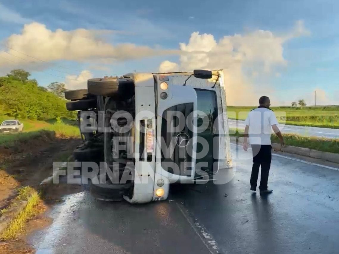 Um caminhão tombou no início da manhã desta terça-feira (12) na BR 230, chega de Bayeux, Grande João Pessoa. A pista molhada pode ter contribuído com o acidente.