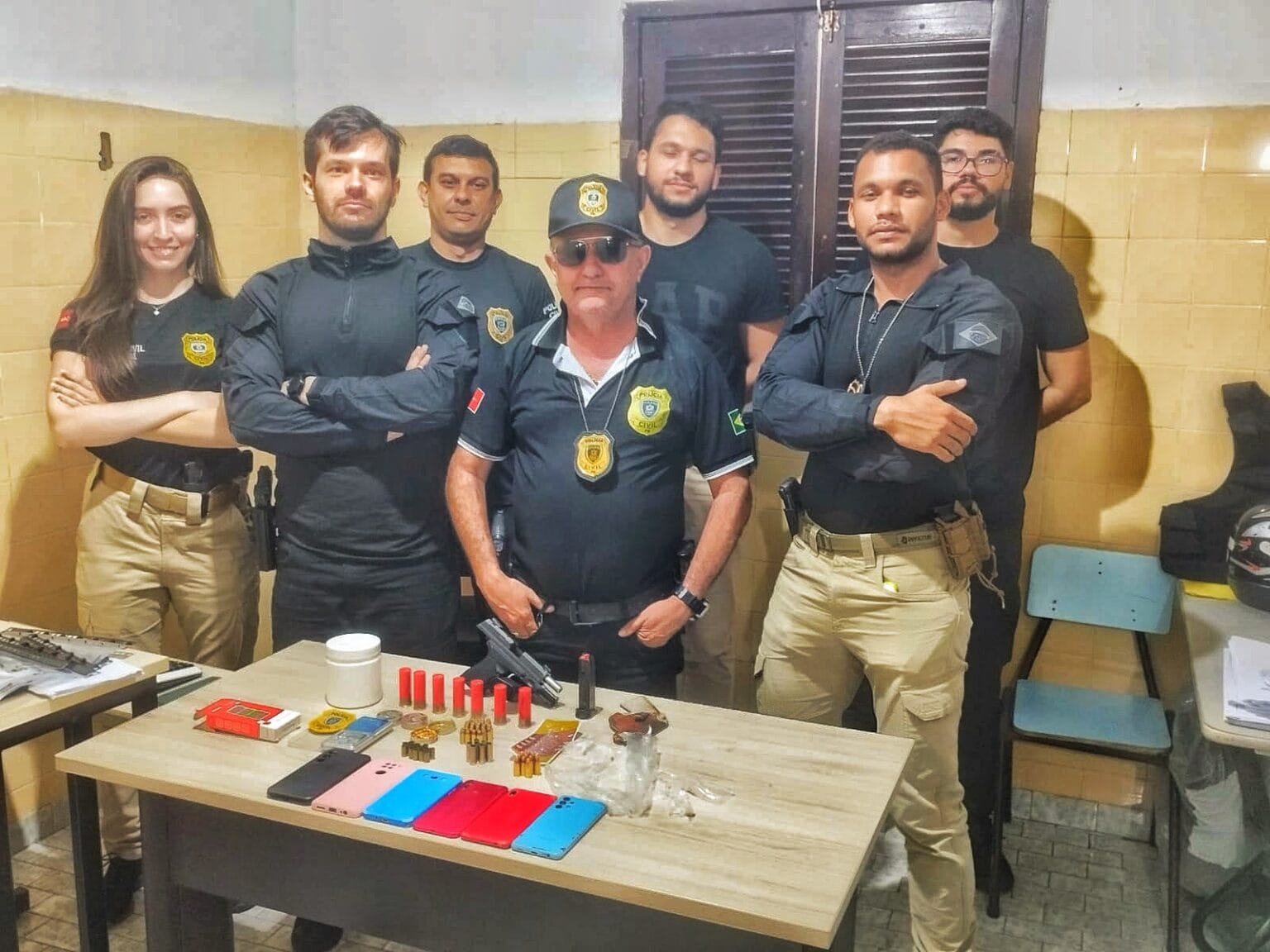 A operação foi chefiada pelo delegado Dr. Rafael Bianchi, que horas responde pela delegacia de São João do Rio do Peixe. Na ação a polícia aprendeu uma pistola 380, várias munições do mesmo calibre, além de munições de outros calibres, papelote com drogas, uma porção de droga análoga a cocaína em um recipiente, vários celulares, balança de precisão além de material para recarregar cartuchos.