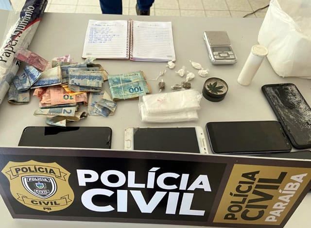 Na manhã dessa quinta-feira (21), policiais civis de Pombal desencadearam uma ação em São Bentinho, e na oportunidade conduziram três pessoas à delegacia de Pombal. Com os conduzidos os Policiais Civis apreenderam porções de cocaína, maconha, crack, balança de precisão, caderno de anotações e muito dinheiro trocado.