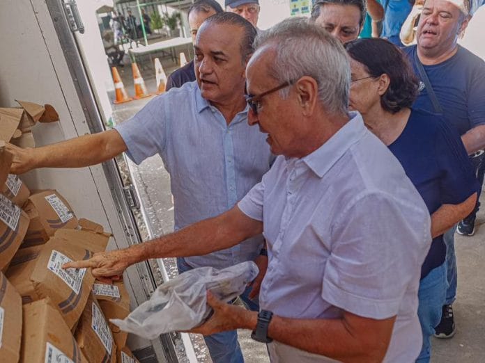 O prefeito Cícero Lucena deu início a distribuição, na Central de Comercialização da Agricultura Familiar (Cecaf), no bairro José Américo, em uma ação que se estende até esta terça-feira (26) e vai beneficiar 35 mil famílias, incluindo os residenciais da Prefeitura, associações, comunidades ribeirinhas e quilombolas.