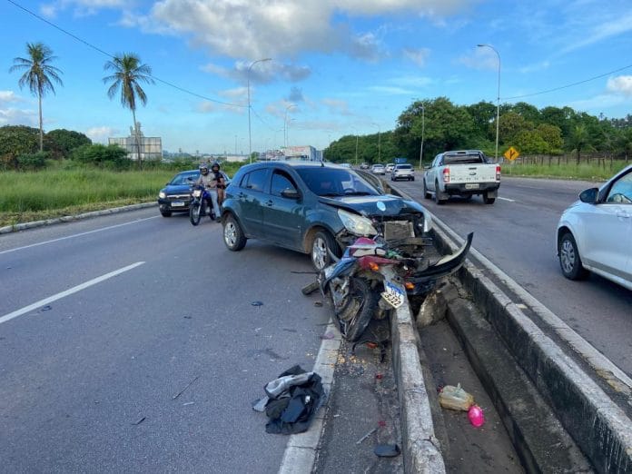 O acidente envolveu um carro e uma motocicleta. De acordo com o relato do motorista, o trânsito no local estava lento e o sol forte impediu que ele observasse o motociclista diminuindo a velocidade na frente dele. Nesse momento, o carro acabou atingindo o moto.