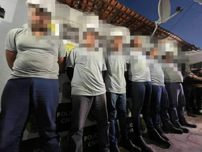 Os oito suspeitos foram levados para a 6ª Delegacia Distrital, onde aguardam audiência de custódia.
