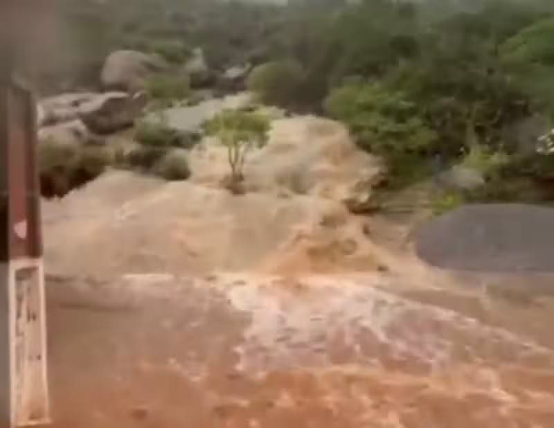 Uma cachoeira se formou no meio da rua após as chuvas que caíram em uma cidade do Sertão paraibano na tarde deste domingo (31). O fenômeno foi filmado por moradores e compartilhado nas redes sociais.