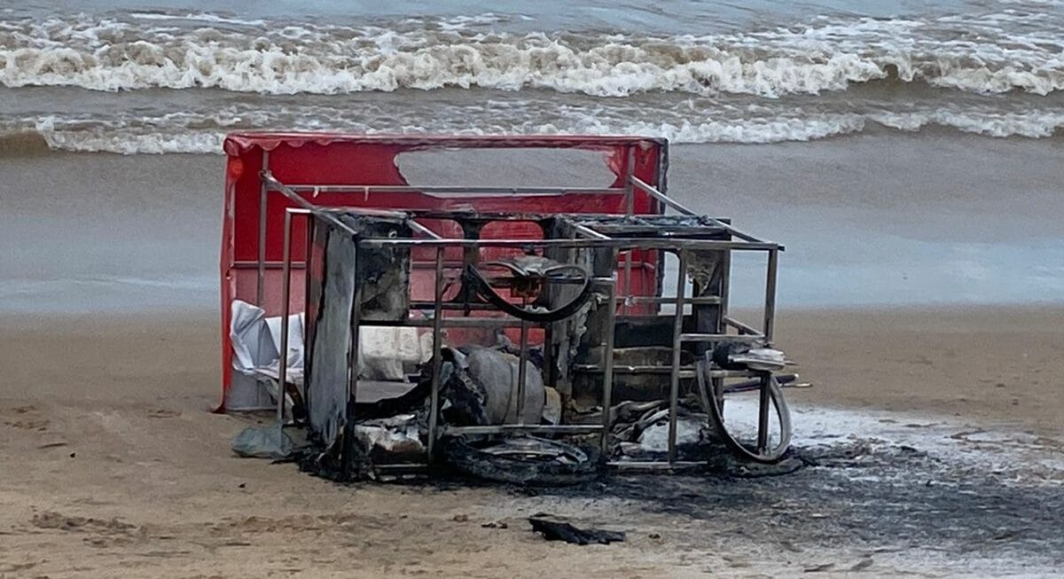 Um carrinho de um vendedor ambulante ficou destruído após pegar fogo na tarde deste domingo (31), na praia de Cabo Branco, em João Pessoa. Ninguém ficou ferido apesar do incidente.