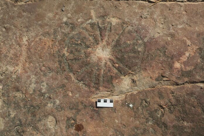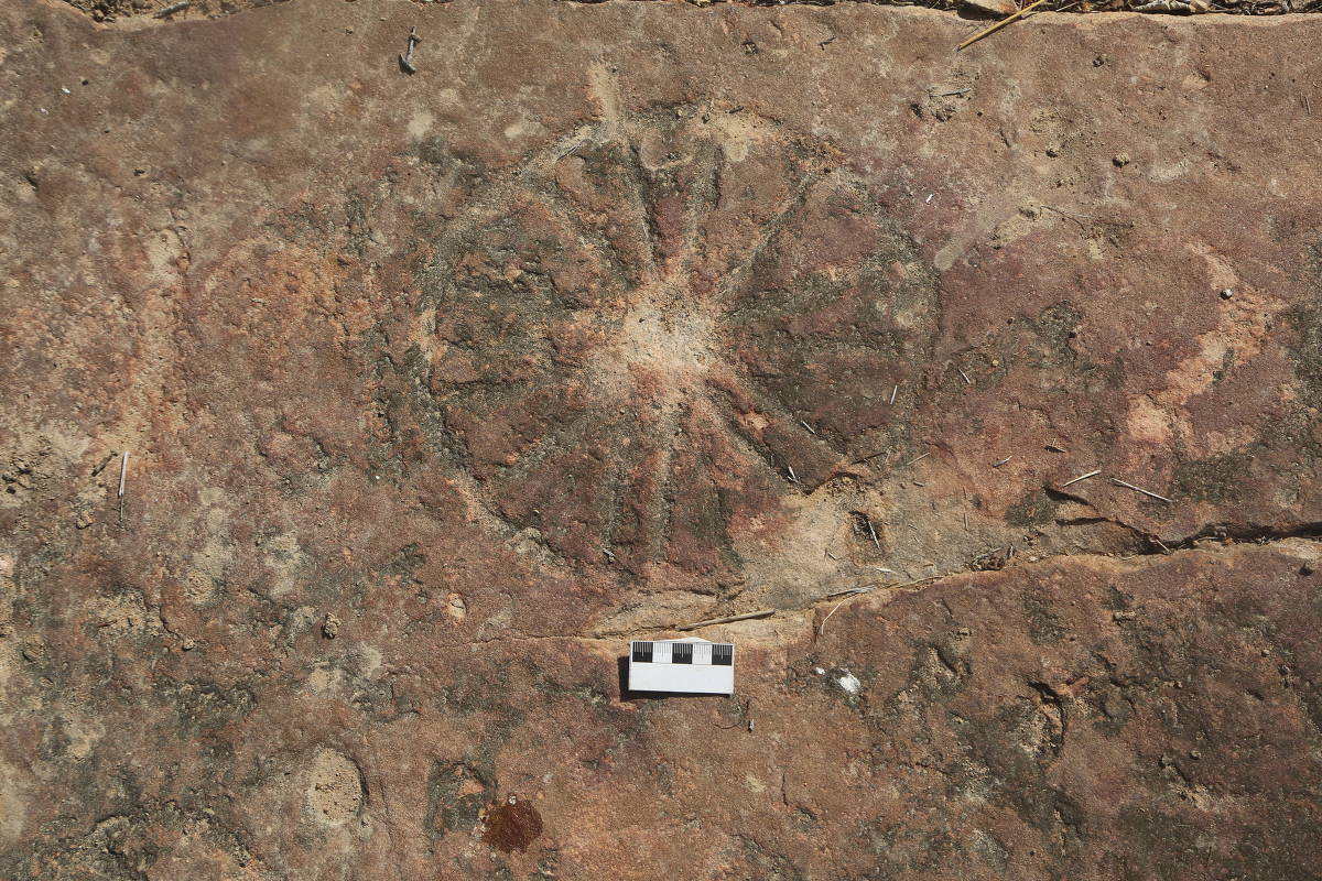 As gravuras, feitas por povos que habitaram a região antes da chegada dos europeus, foram encontradas próximas às pegadas de dinossauros, mas nunca sobrepostas aos registros fósseis.
