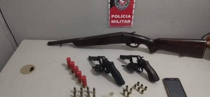 Após denúncias de um possível confronto armado entre grupos criminosos, os policiais militares do 7º Batalhão montaram um cerco na região. Na operação, também foram apreendidas 16 munições intactas e drogas.