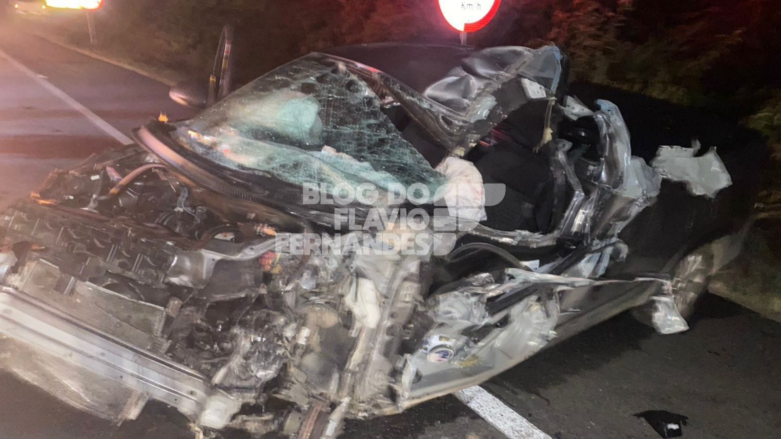 Carro fica destruído em acidente, em Santa Luzia