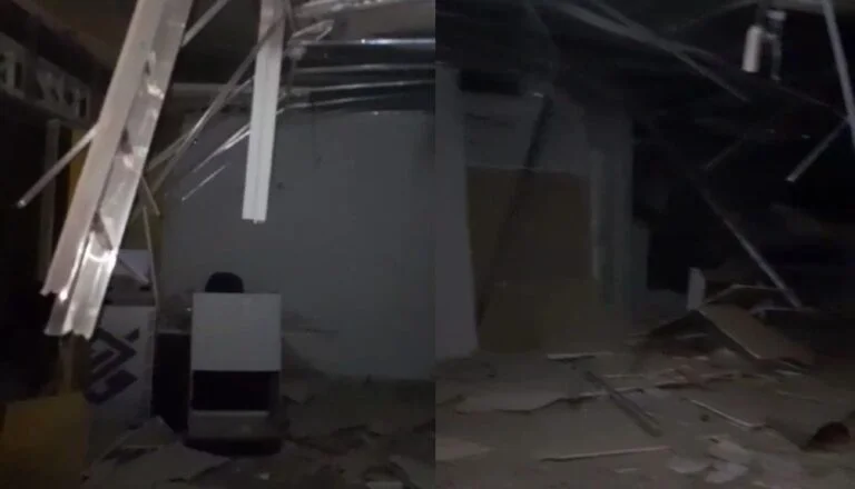 Imagens divulgadas na internet mostram a situação que ficou a estrutura do prédio que abrigava o banco. A Polícia segue investigando o caso.