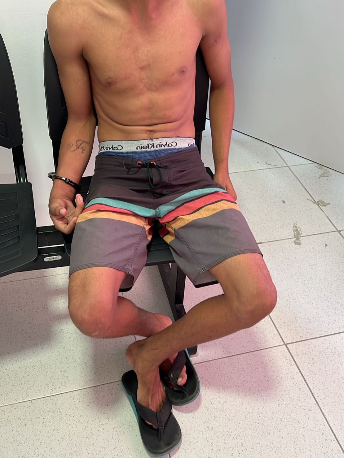 Além da arma, a polícia encontrou grande quantidade de drogas com o menor de idade. A ação aconteceu na comunidade Dois Lados e, de acordo com o delegado João Paulo Amazonas, houve troca de tiros e um policial ficou ferido no braço por estilhaços.