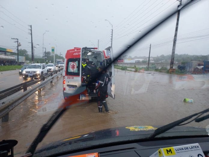 As fortes chuvas que caíram na manhã desta terça-feira (4) em João Pessoa provocaram diversos pontos de alagamento em bairros e rodovias. Um acidente envolvendo um caminhão e uma moto foi registrado na BR-101, em Bayeux, na Região Metropolitana.