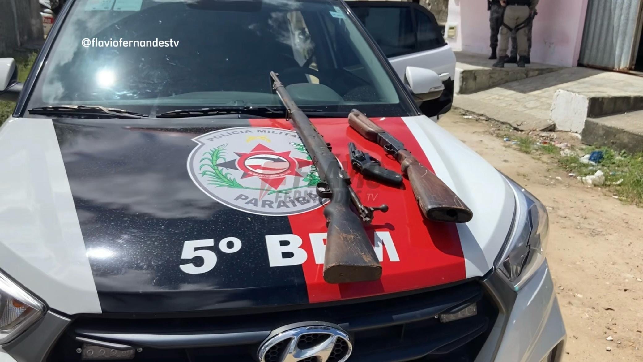 Já pela manhã, os policiais foram informados que no mesmo bairro uma família era feita refém por criminosos que tinham fugido da ação da madrugada e se escondiam no imóvel. Ao chegar no local, a guarnição se deparou com as vítimas aflitas e três bandidos escondidos em um dos cômodos da casa. Com eles, o fuzil, a espingarda calibre 12 e o revólver calibre 38.