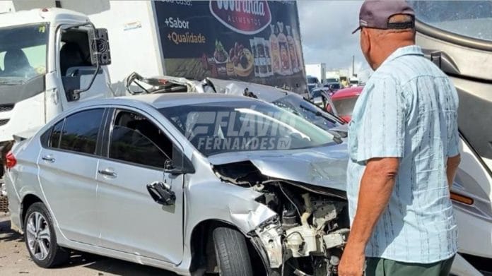 Segundo informações de motoristas, um caminhão teria perdido os freios e arrastado os outros veículos. A PRF, o SAMU e o Corpo de Bombeiros ajudaram no resgate das vítimas. A princípio, nenhuma delas sofreu ferimentos graves.