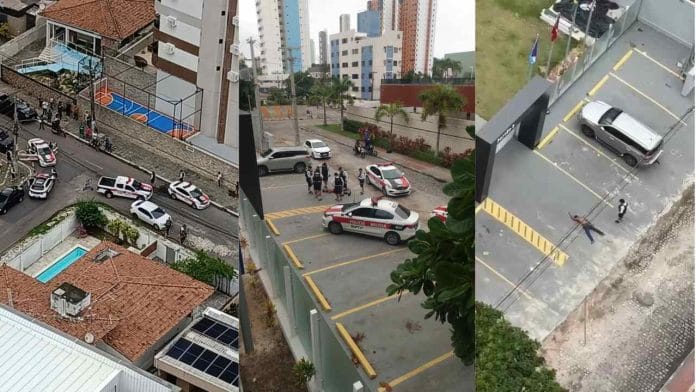 O caso ocorreu em frente a uma escola, no momento do intervalo dos alunos. Durante a ocorrência, um inspetor chegou a pedir para as crianças correrem para as salas de aulas.