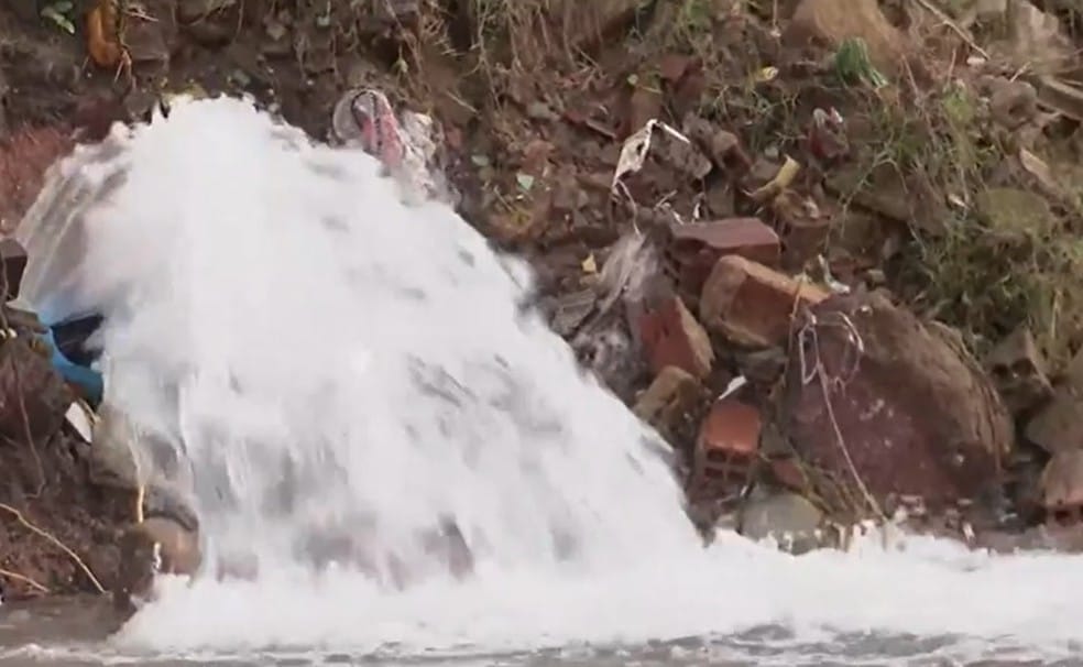 Moradores informaram que o vazamento começou nesta segunda-feira (26), por volta das 18h30, após um cano ser quebrado durante uma obra.